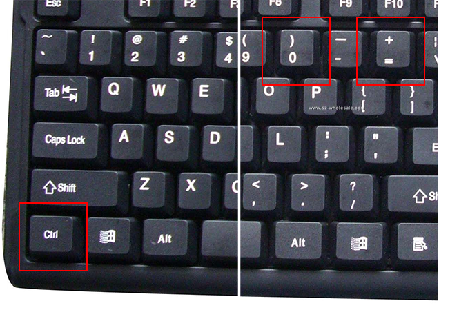 Om weer terug te keren naar de standaard waarde hou je de CTRL toets ingedrukt en druk je een keer op de 0 (nul) toets.